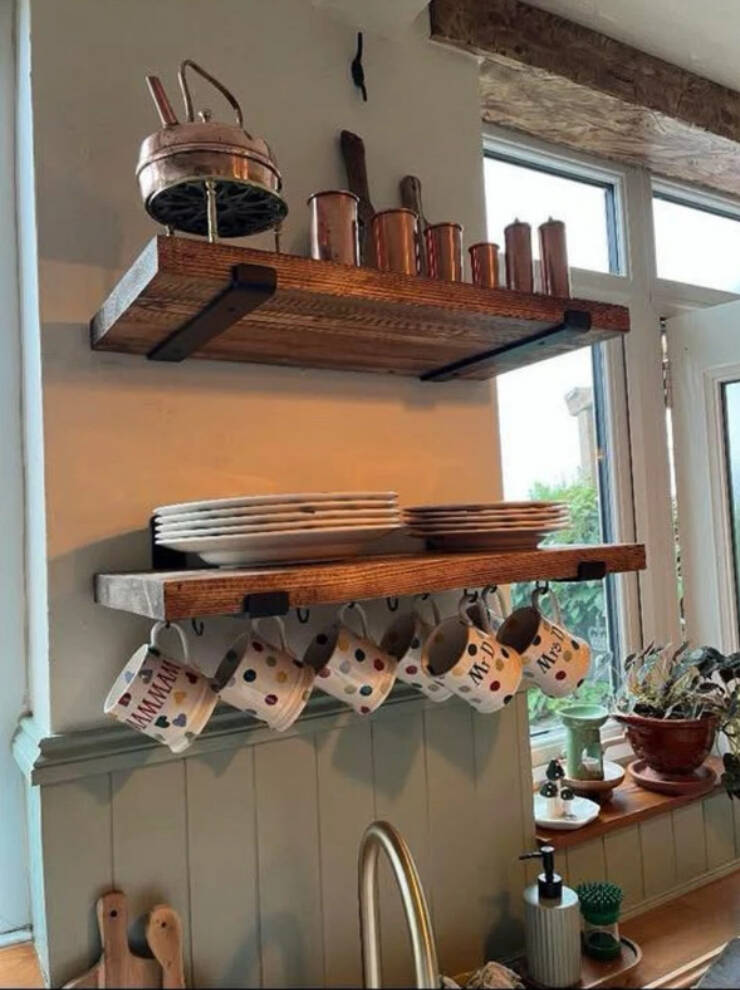 Whether you're going for a modern rustic look or a cosy farmhouse feel, these shelves are a beautiful and practical addition to any space.